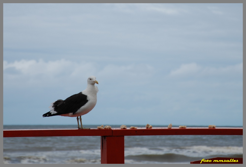 Menos de um metro adiante, uma gaivota chamada Isaura (parece nome bom para gaivota), também esperava algo. Majestosa e arrogante, ela desprezava o pombo como a dizer "este lugar é meu, oh escurinho! Se manda!".